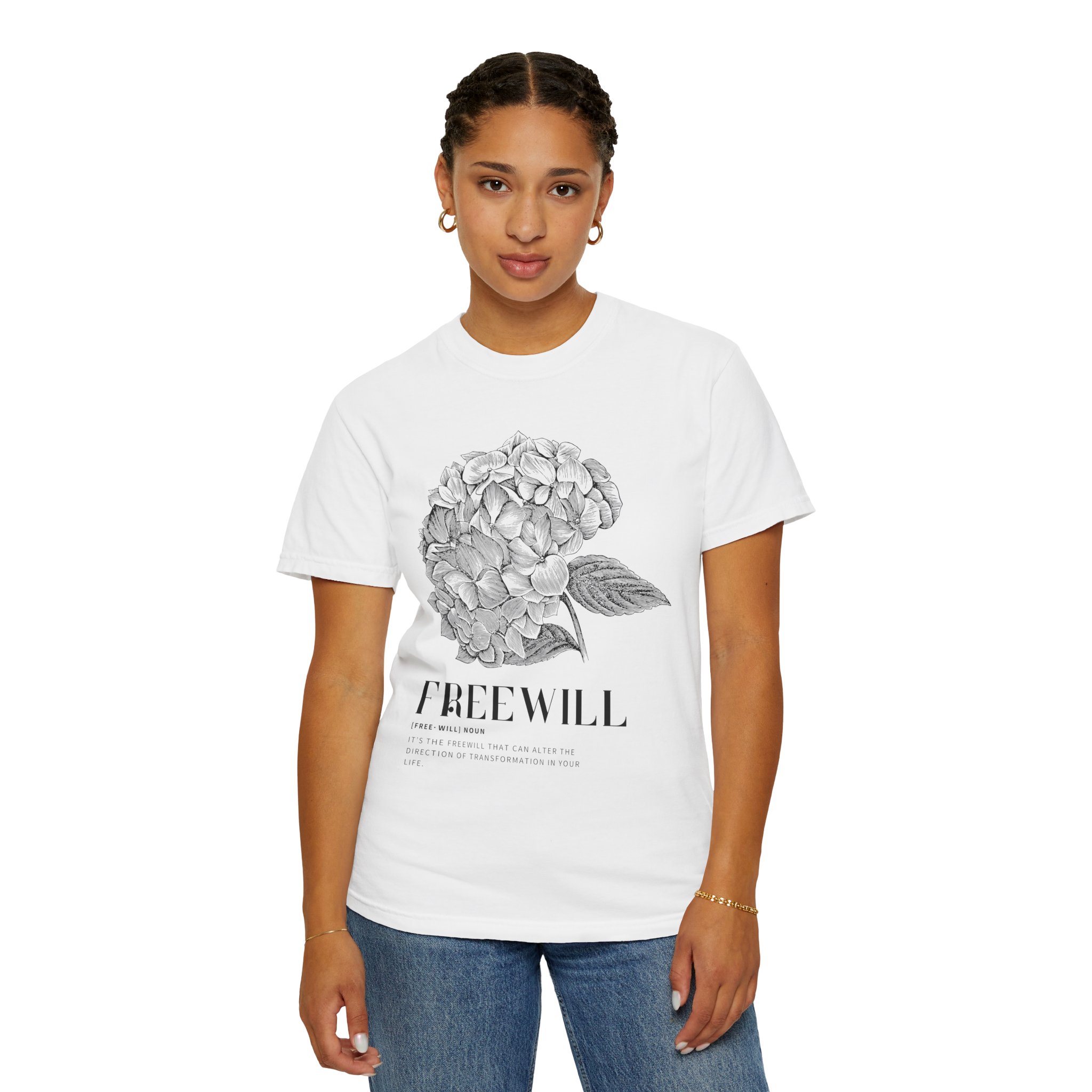 A comfortable unisex T-shirt featuring a quote about freewill. This garment-dyed tee is perfect for those seeking a relaxed fit in both casual and semi-formal settings. Ideal for adults looking for a versatile and long-lasting piece to add to their wardrobe. Suitable for wearing on holidays, celebrations, and everyday occasions.